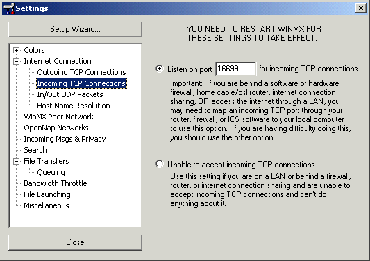 7... Close the WinMX program and restart it. (Firewalled
