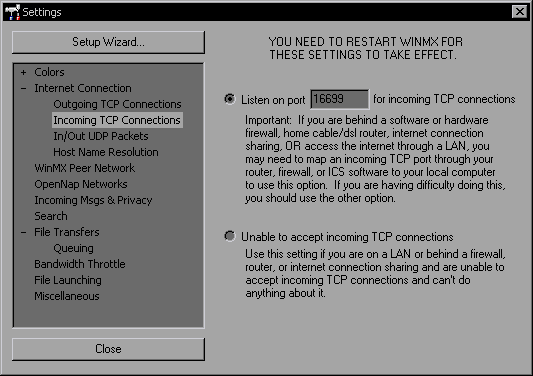 Parvenu à ce point si vous n'avez pas de demande de config pour WinMX allez directement ici