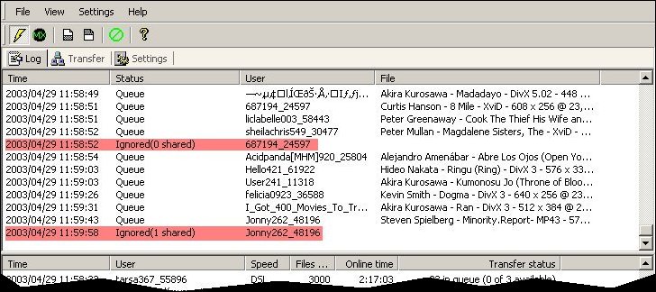Ici, les utilisateurs 687194_24597 et Jonny262 ont été effacés de ma file d'attente parce que le nombre de fichiers qu'il partagent est inférieur à la limite fixée (chez moi 5)