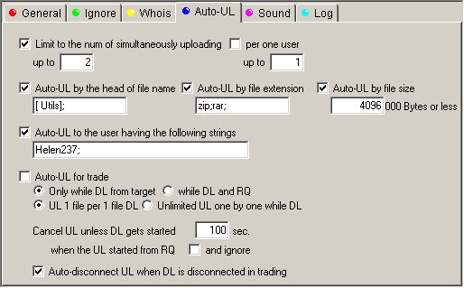 l'ordre ou ils sont arrivés dans la file d'attente) - Auto disconnect UL when DL is disconnected in trading : Arrête l'upload automatique en cours si le download de l'utilisateur distant s'arrete.