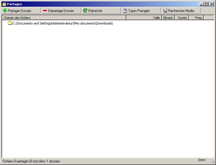 Cela terminé, la fenêtre de partages va se rafraîchir et présenter un aspect plus avenant :