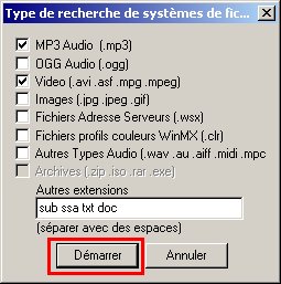 Cochez "MP3 Audio", "Video" et dans "autres extension" ajoutez "doc" (et toute autre extension que vous désirer partager et qui ne figure pas dans la liste au dessus). Cliquez sur "OK". Vous voilà prêt à rechercher sur votre disque tous les fichiers qui correspondent aux types ci-dessus. Pour ce faire, toujours dans la fenêtre de partage, cliquez sur le bouton "Rechercher Media", et cochez les mêmes cases et ajoutez les mêmes extensions que dans le dialogue précédent :